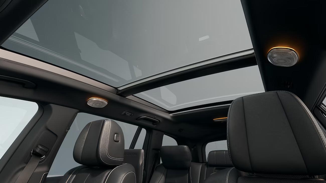 Cửa sổ trời trượt toàn cảnh: Với cửa sổ trời trượt toàn cảnh của GLS, bạn sẽ cảm thấy gần hơn với bầu trời. Trang bị này không chỉ giúp xe thoáng khí vào những ngày nóng, mà còn khiến không gian bên trong xe tràn ngập ánh sáng tự nhiên và mang đến cho nội thất chiếc xe một bầu không khí tươi sáng.