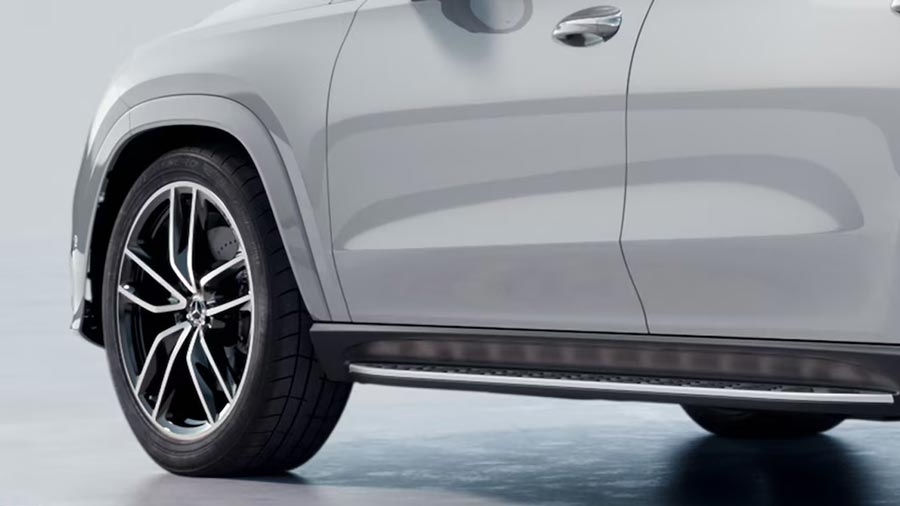 Bậc cửa xe được chiếu sáng: Bậc cửa xe được chiếu sánglàm nổi bật thiết kế độc quyền và chi tiết đáng yêu của GLS và khiến bước đầu tiên lên xe thành một trải nghiệm đặc biệt cho bạn.