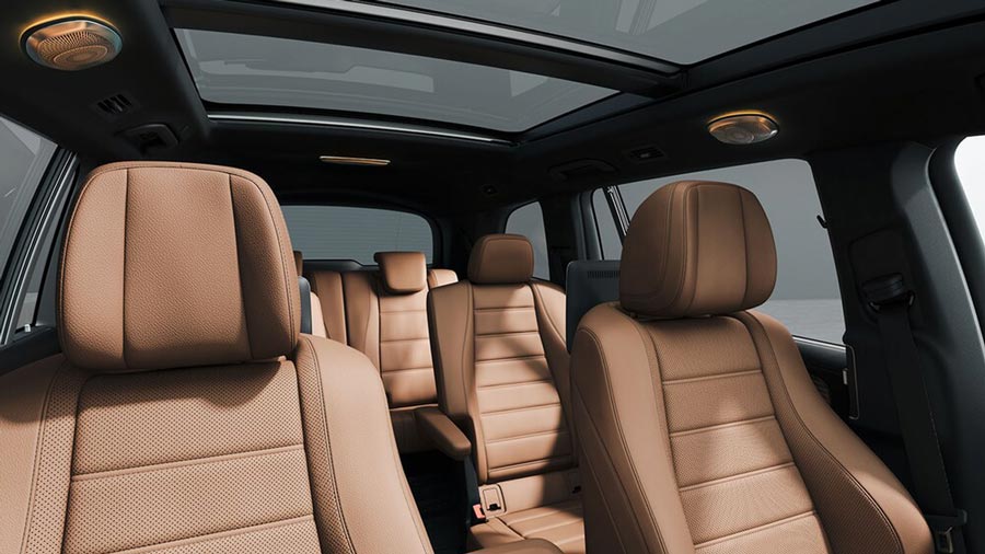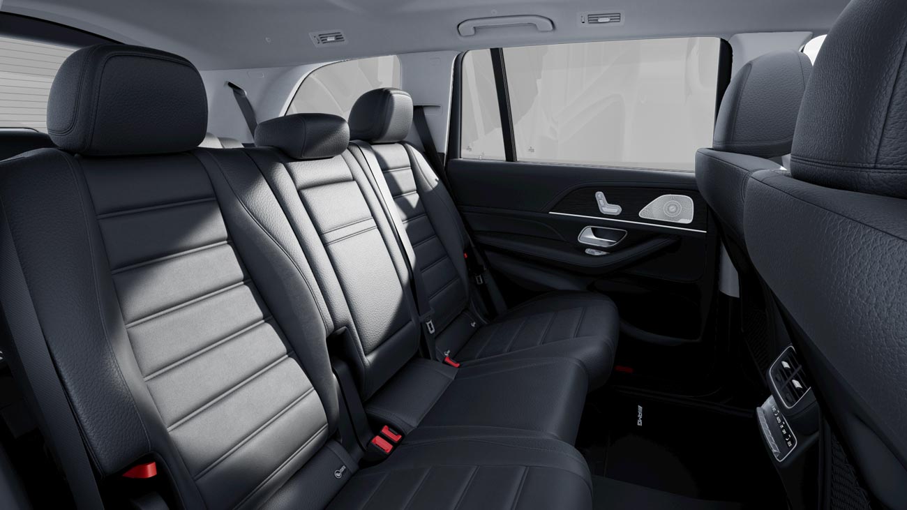Hàng ghế thứ ba: Chia sẻ trải nghiệm lái đặc biệt của GLS với tối đa bảy người. Nhờ hàng ghế thứ ba, xe có đủ không gian rộng rãi cho mọi người. Mỗi ghế đều mang lại tiện nghi đẳng cấp. Có thể linh hoạt mở rộng chỗ để chân ở hàng ghế thứ hai bằng cách điều chỉnh bằng điện theo chiều dọc.