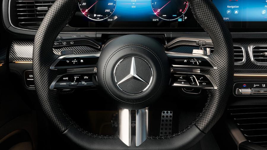 Tay lái thể thao đa năng: Tiện nghi điều khiển cái tiến kết hợp với vật liệu cao cấp: Tay lái thể thao đăng năng của GLS thực sự đa năng. Các nút Touch-Control được sắp xếp theo công thái học, cho phép điều khiển trực quan định vị và dẫn đường, điện thoại, tốc độ và giải trí. Nhờ đó, bạn sẽ kiểm soát được mọi thứ mà không cần rời tay khỏi tay lái. Tay lái thể thao đa năng bọc da nappa mềm có đáy phẳng và dập chìm sâu ở vùng tay nắm – cả hai đều là điều kiện tiên quyết tuyệt vời để tạo nên phong cách lái thể thao.