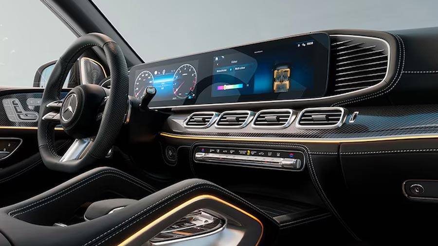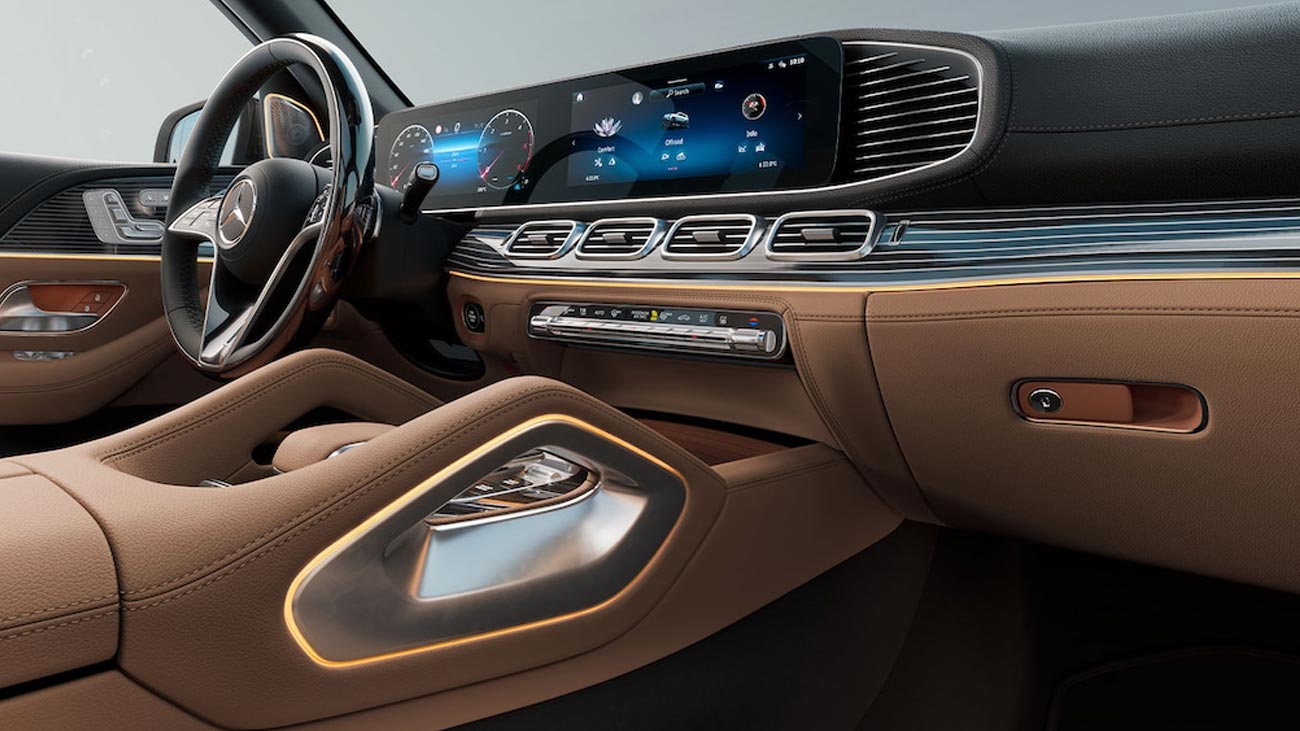 Với nội thất xe Mercedes-Benz GLS 450 4MATIC FL, các chi tiết thiết kế SUV như tay nắm gọn gàng ở hộp giữa được kết hợp với các đặc điểm nổi bật cải tiến như tay lái được thiết kế mới. Buồng lái màn hình rộng có hệ thống đa phương tiện MBUX mang đến cho bạn trải nghiệm người dùng tốt nhất có thể trên mỗi hành trình: rõ nét, nhanh chóng và hiệu quả. Hãy cảm nhận cảm giác độc quyền với hệ thống đèn viền nội thất hiện đại.