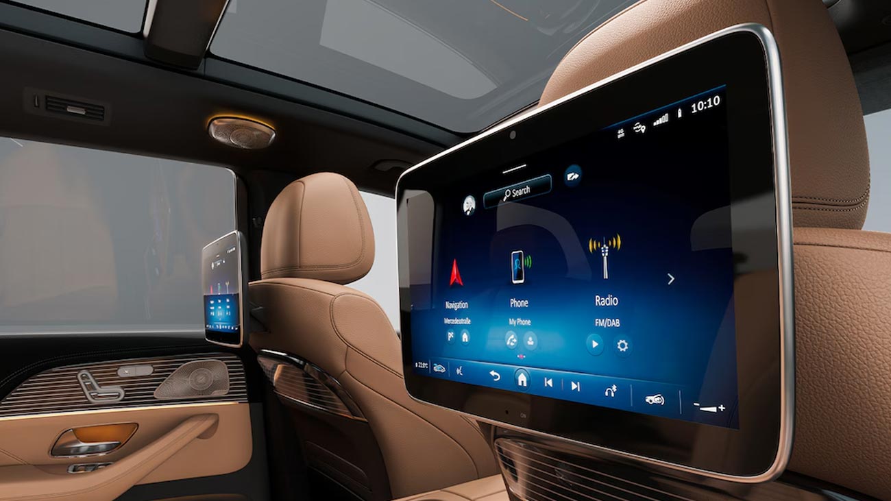 Hệ thống giải trí cao cấp MBUX cho khoang sau: Tự quyết định một cách dễ dàng: Với hệ thống giải trí MBUX cho khoang sau, bạn có thể sắp xếp chương trình cho mỗi chuyến đi theo ý tưởng của riêng bạn. Màn hình cảm ứng độ phân giải cao cho phép truy cập trực tiếp vào Internet và điện thoại cũng như hệ thống đa phương tiện và hệ thống định vị và dẫn đường.
