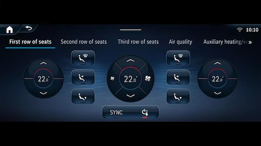 Hệ thống điều hòa THERMOTRONIC: 4 vùng khí hậu mang lại bầu không khí thoải mái cho từng cá nhân trên xe. Người lái và hành khách ghế trước có thể cài đặt nhiệt độ, sự phân phối không khí và chế độ điều hòa theo nhu cầu cá nhân. Có thể lưu lại mức điều chỉnh điều hòa nhiệt độ và mở ra chỉ bằng một nút bấm.
